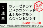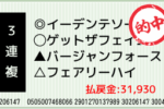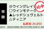 1着:◎ダブルメッセージ(11人気) 2着: ディズレーリ(10人気) 3着:○オウケンシルヴァー(2人気) 単勝:16:1,000円x29.9倍=29,900円 複勝:16:2,000円x9.6倍=19,200円 ワイ...