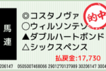 1着:○ヴィナクローナ(1人気) 2着:☆スターダストレイン(9人気) 3着:◎サイセイセイ(3人気) 3連複:1-3-9:1,000円x56.1倍=56,100円 [hit_race:https://yoso.sp.n...