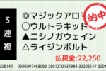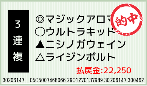 1着:○ウルトラキッド(1人気) 2着:◎マジックアロマ(3人気) 3着:▲ニシノガウェイン(4人気) 3連複:1-2-5:2500円x8.9倍=22,250円 [hit_race:https://yoso.sp.net...
