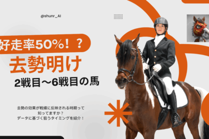 中央競馬休養明け出走間隔去勢馬券攻略去勢明け初戦の馬去勢明け初戦でも好走する馬はいるのか? 「去勢の効果は何戦目から出るのか?」という視点で、去勢明け初戦から10戦目までのデータをまとめてきましたが、実際には初戦から好走する馬も存在します。 →成績としては控えめながらも、...shunrai2025年1月4日 Read More