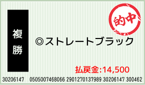 1着: クリフハンガー(6人気) 2着: サラスヴァティー(2人気) 3着:◎ストレートブラック(4人気) 複勝:5:5,000円x2.9倍=14,500円 [hit_race:https://yoso.sp.netke...