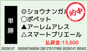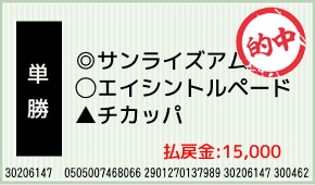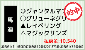 1着:注 ガイアフォース(3人気) 2着:◎ジャンタルマンタル(1人気) 3着:☆ソウルラッシュ(4人気) 馬連:5-10:6,000円x1.8倍=10,800円 [hit_race:https://yoso.sp.ne...