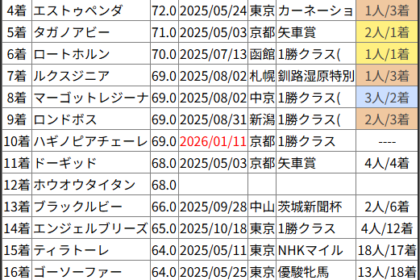 ※見解・買い目はこちらを参照ください。 前走戦った相手が次走好走しているレース出身馬の一覧です。 今回のメンバー相手に通用するかは、スピード指数表と合わせてご覧下さい。 2026/01/07 浦和1R C3-4 C3-5...