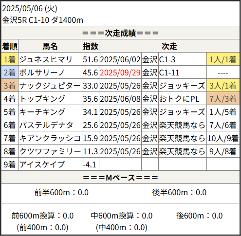 今回のメンバー相手に通用するかは、スピード指数表と合わせてご覧下さい。
