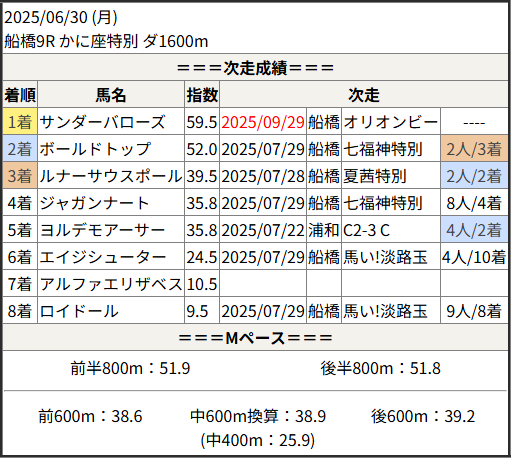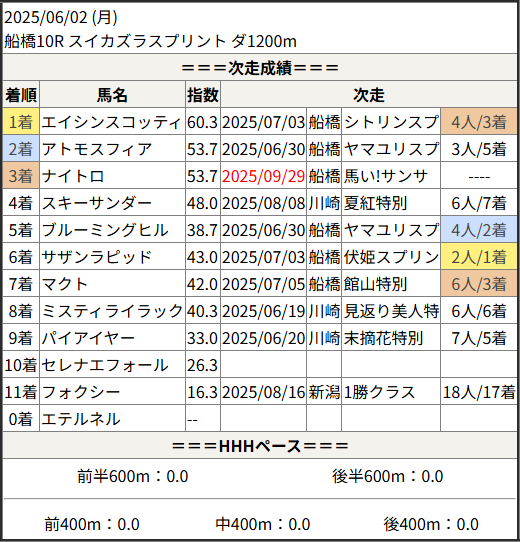 2025/09/29 船橋8R 馬い!サンサンエッグ:結果