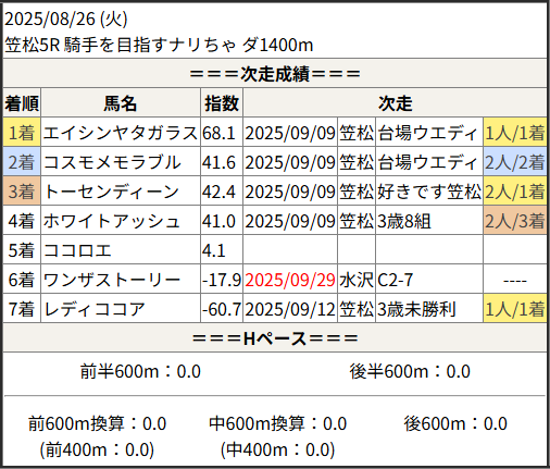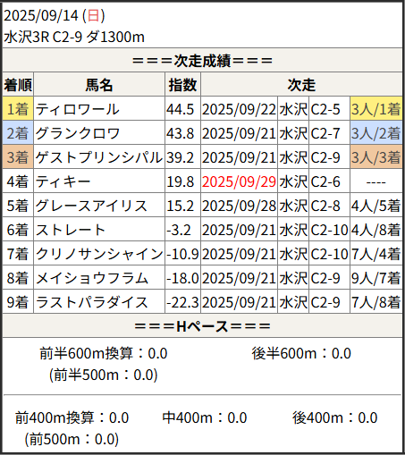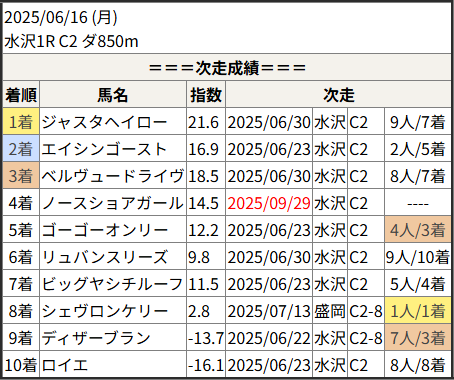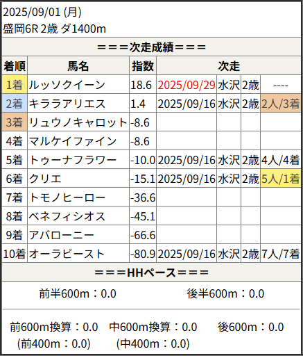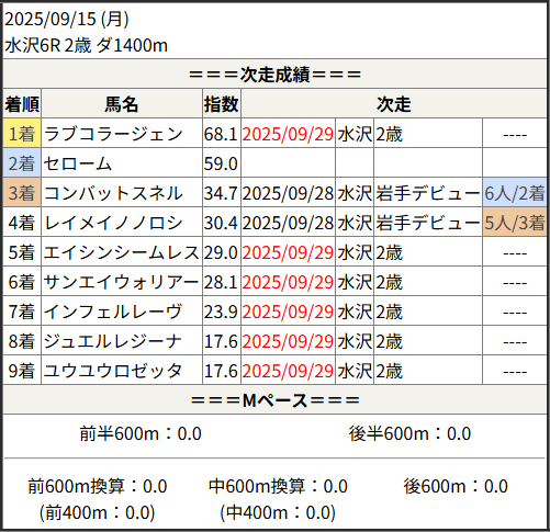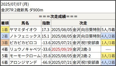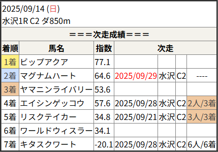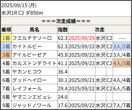 Home / 予想データ / 次走好走 / 2025/09/29 次走好走馬の目立つ組出身
