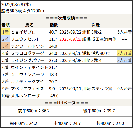 2025/09/29 船橋5R 成田空港南側!スカイ:結果