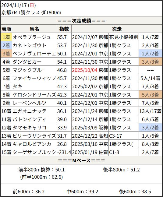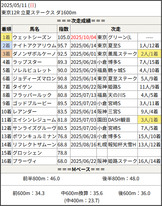 今回のメンバー相手に通用するかは、スピード指数表と合わせてご覧下さい。