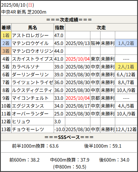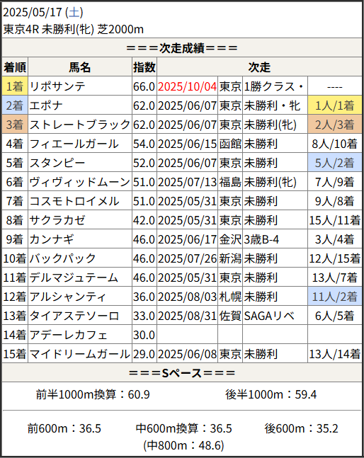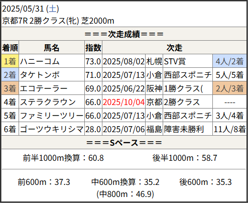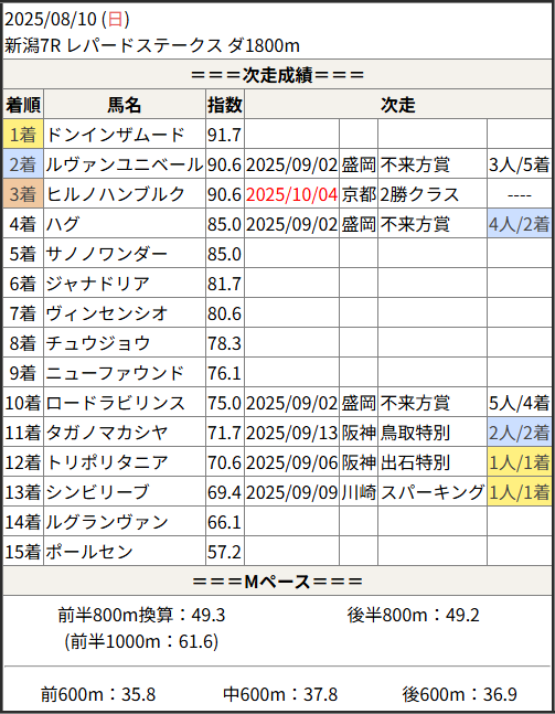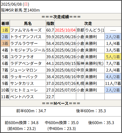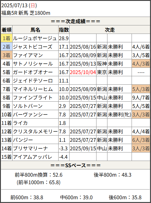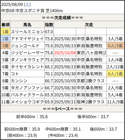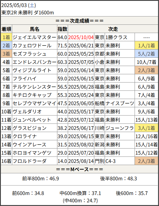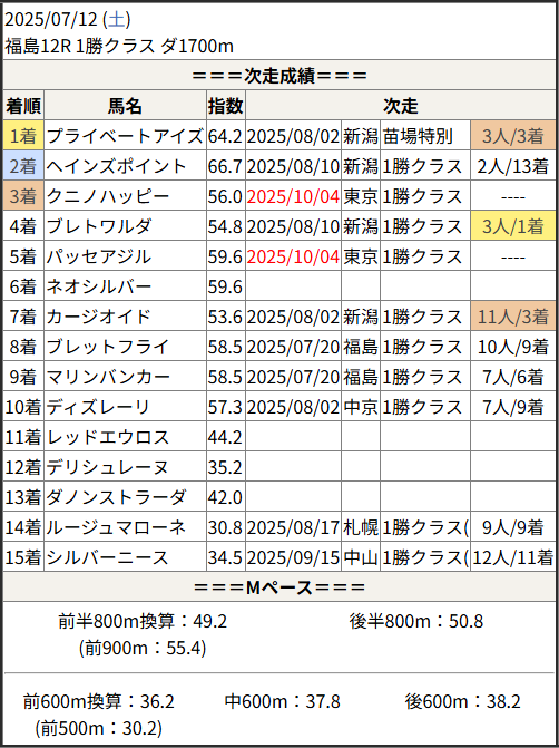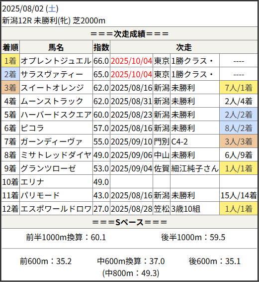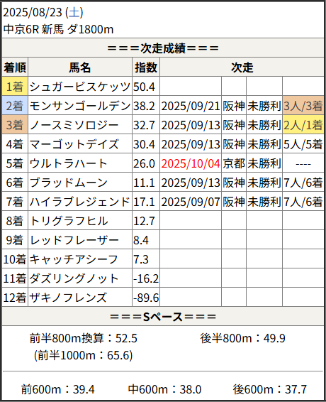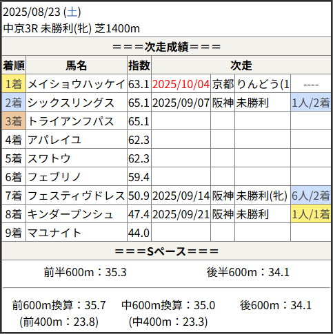 Home / 予想データ / 次走好走 / 2025/10/04 次走好走馬の目立つ組出身