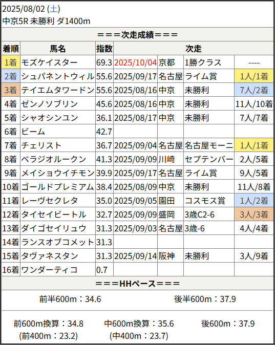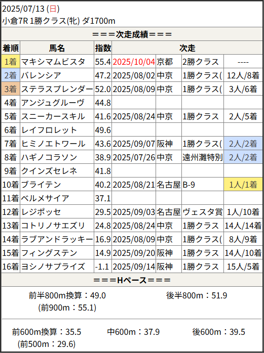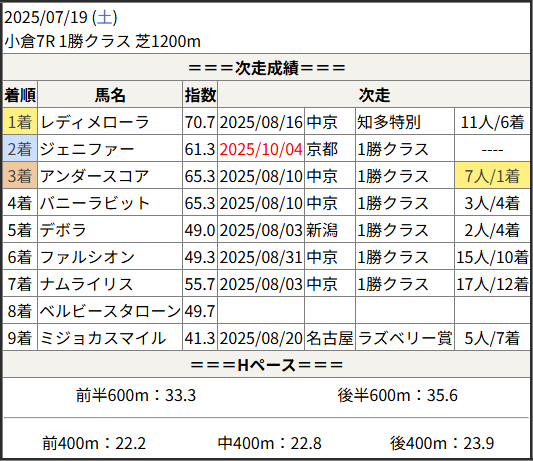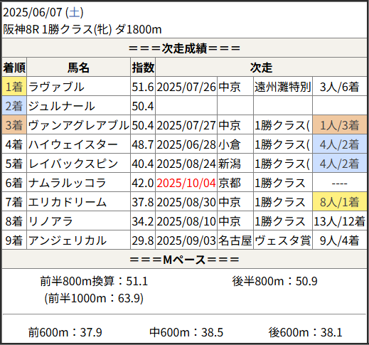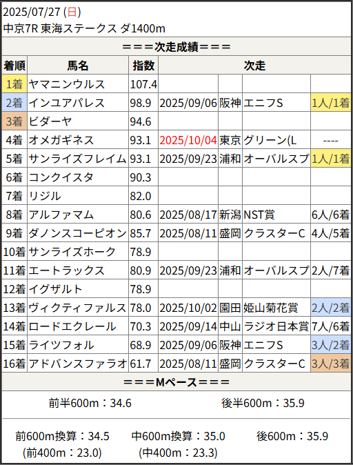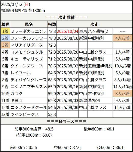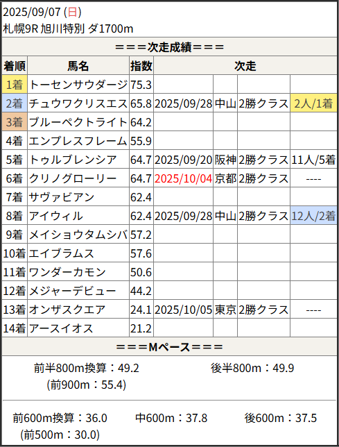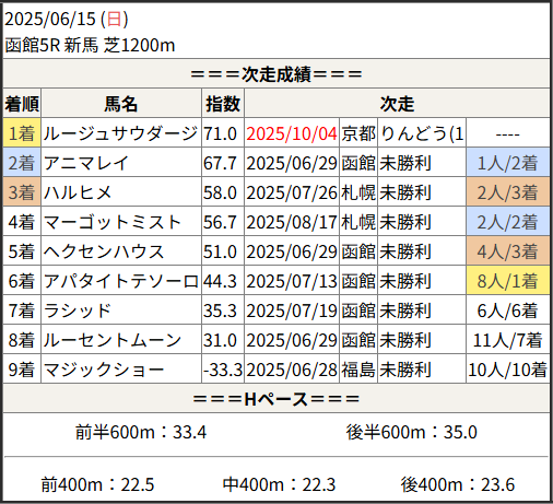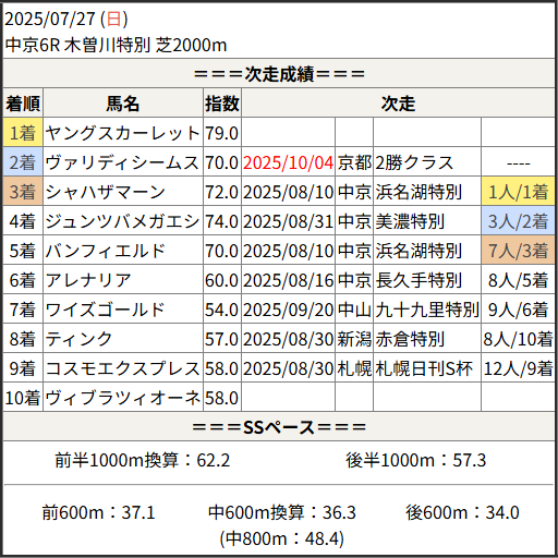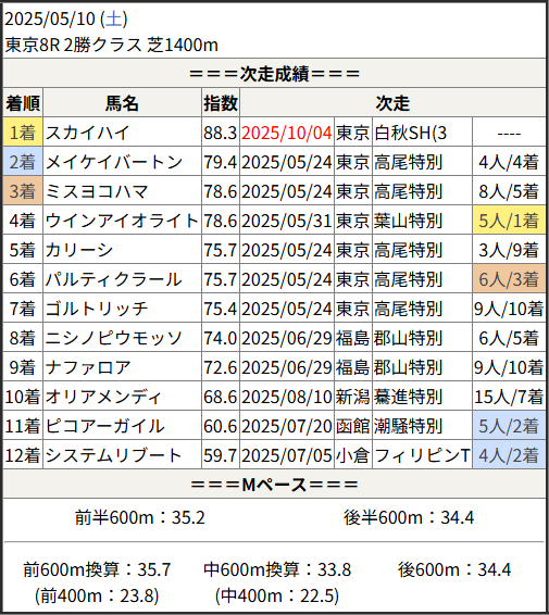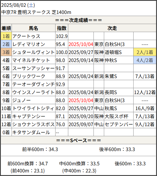 Home / 予想データ / 次走好走 / 2025/10/04 次走好走馬の目立つ組出身