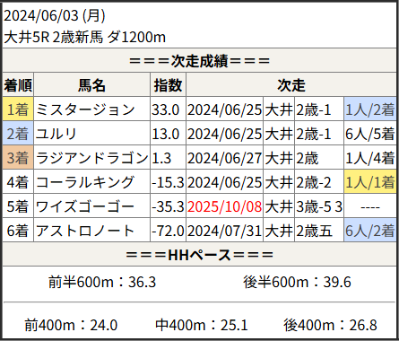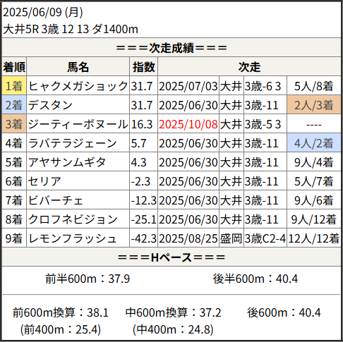 2025/10/08 大井3R 2歳-4 2歳-5:結果