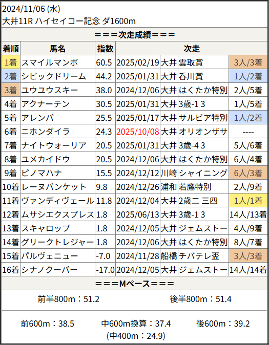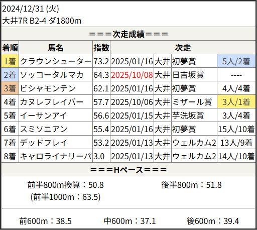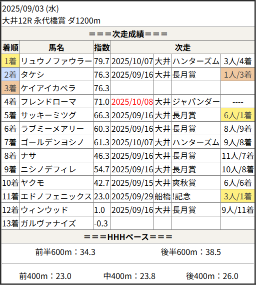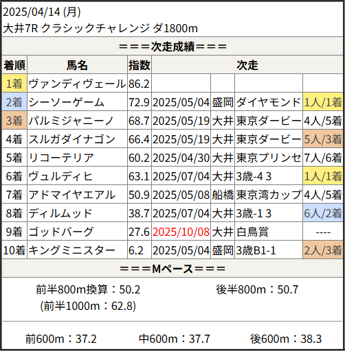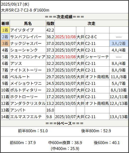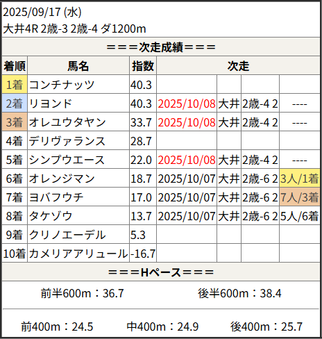 2025/10/08 大井10R オリオンザサンクス賞:結果