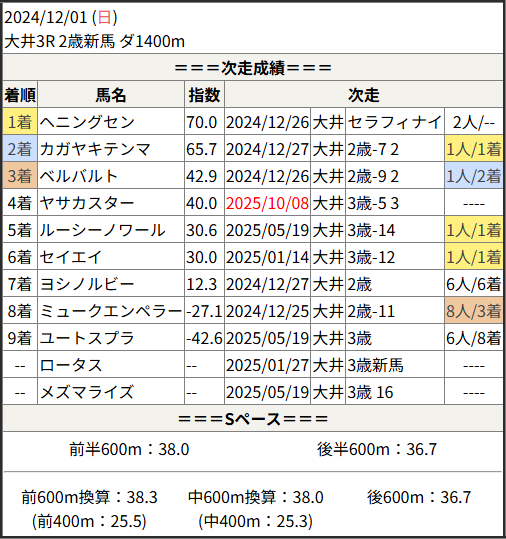 2025/10/08 大井1R 3歳-5 3歳-6:結果