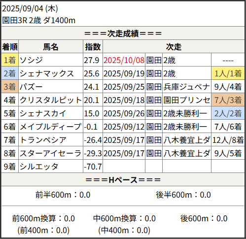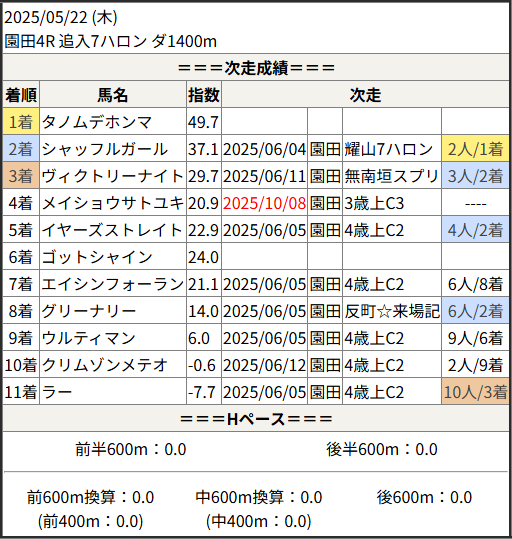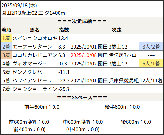 2025/10/08 園田4R 伊伝居7ハロン:結果