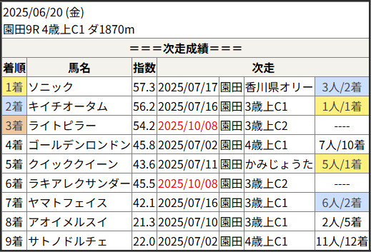2025/10/08 大井6R C2-8 C2-9 C2-10:結果