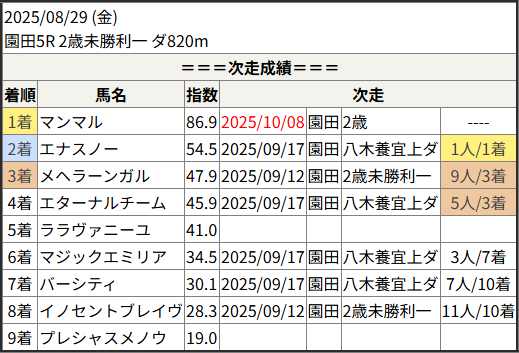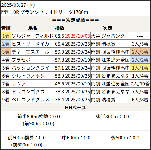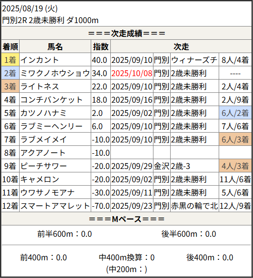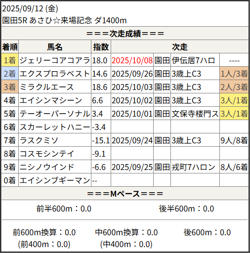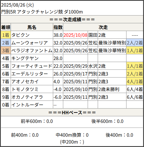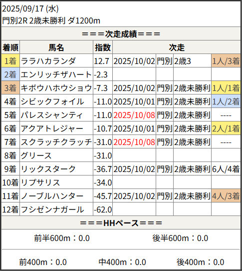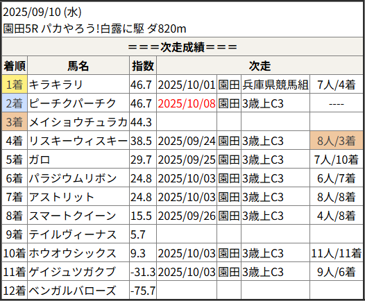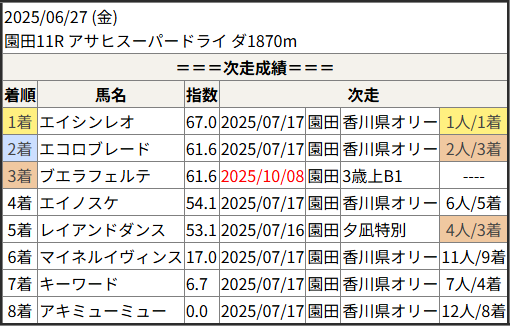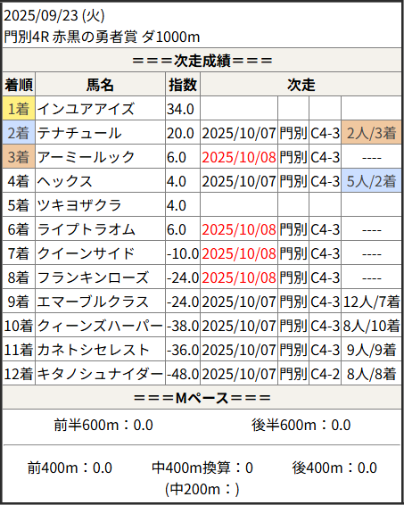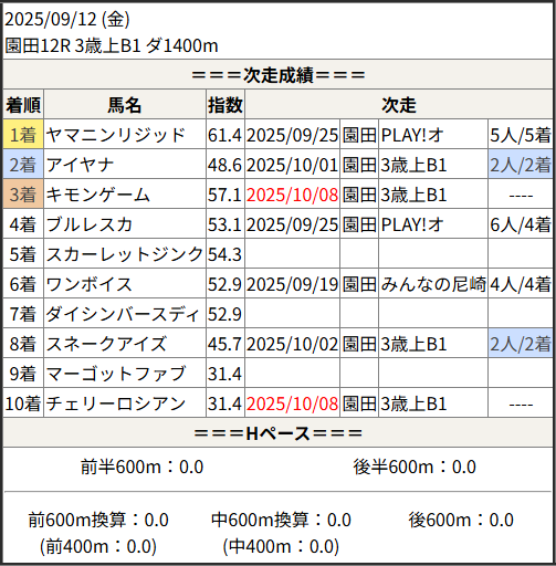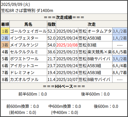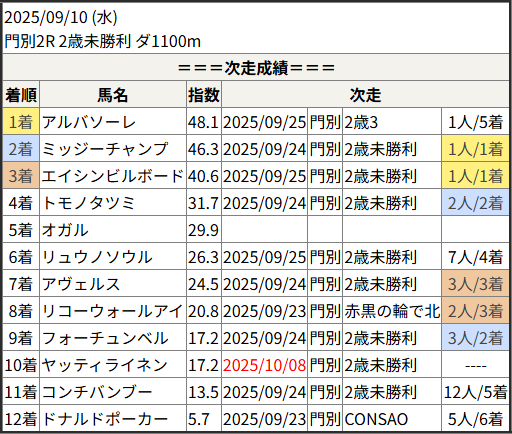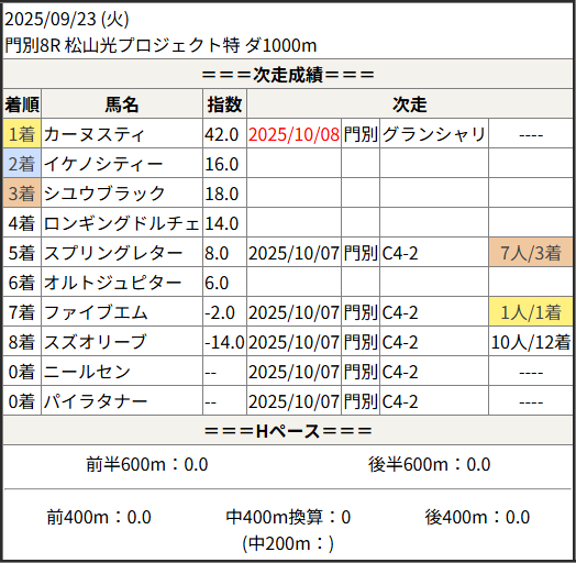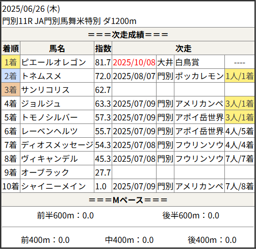 2025/10/08 門別9R シュウカイドウ特別:結果
