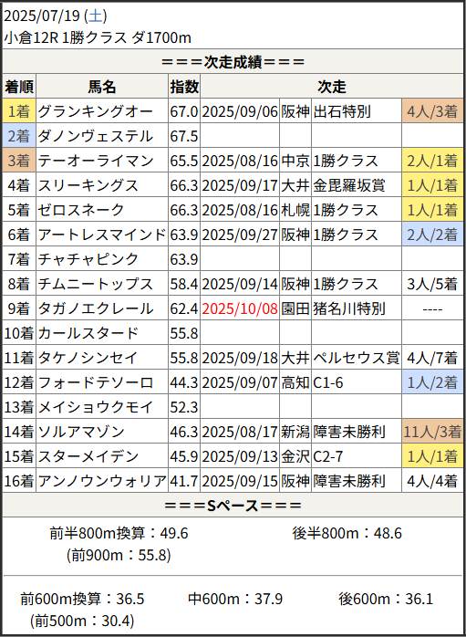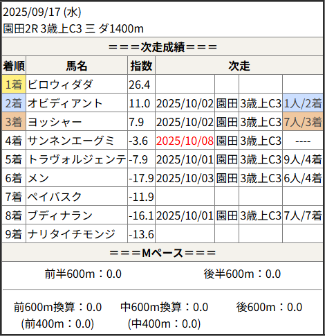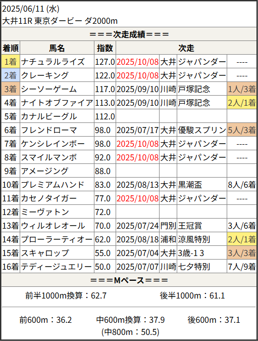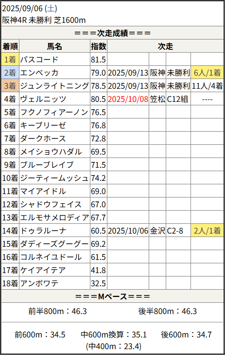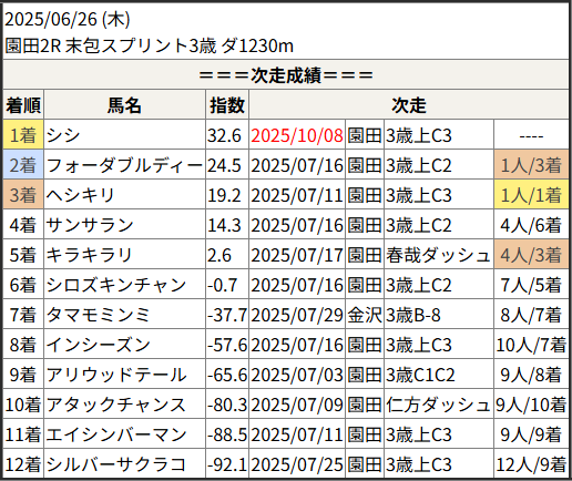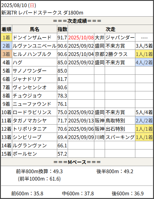 今回のメンバー相手に通用するかは、スピード指数表と合わせてご覧下さい。