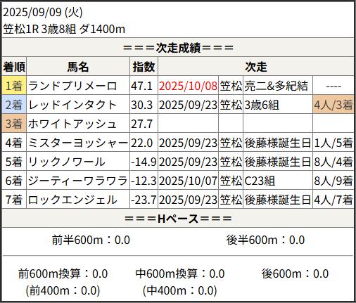 2025/10/08 笠松3R 亮二&多紀結婚記念杯:結果