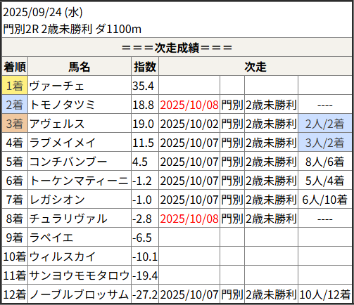 前走戦った相手が次走好走しているレース出身馬の一覧です。