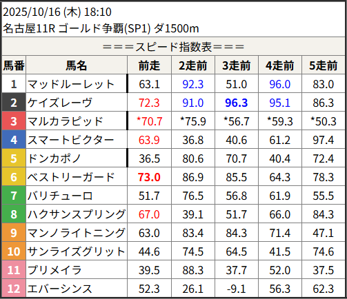 Home / 予想データ / 2025/10/16 スピード指数表スピード指数予想データ2025/10/16 スピード指数表による shunrai コメントはまだありません2025年10月15日 23:14 ※見解・買い目はこちらを参照ください。 門別 川崎 名古屋 園田 共有: クリックして X で共有 (新しいウィンドウで開きます) X クリックして友達にメールでリンクを送信 (新しいウィンドウで開きます) メールアドレス Facebook で共有するにはクリックしてください (新しいウィンドウで開きます) Facebook いいね:いいね 読み込み中…Share ArticlePrevious Article2025/10/15 川崎7R 3連複・3連単◎△注 170,140円🎯Next Article2025/10/16 次走好走馬の目立つ組出身shunraiRelated Posts 2025/11/15 スピード指数表 2025年11月14日 2025/11/14 スピード指数表 2025年11月13日 2025/11/13 スピード指数表 2025年11月12日コメントを残す コメントをキャンセルメールアドレスが公開されることはありません。 ※ が付いている欄は必須項目ですコメント名前 メール サイト 次回のコメントで使用するためブラウザーに自分の名前、メールアドレス、サイトを保存する。 Δ