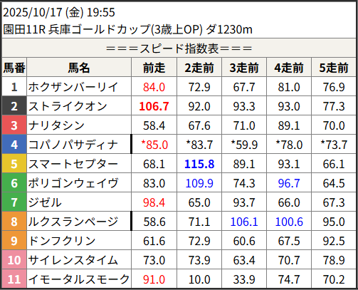 Home / 予想データ / 2025/10/17 スピード指数表スピード指数予想データ2025/10/17 スピード指数表による shunrai コメントはまだありません2025年10月16日 18:41 ※見解・買い目はこちらを参照ください。 川崎 名古屋 園田 共有: クリックして X で共有 (新しいウィンドウで開きます) X クリックして友達にメールでリンクを送信 (新しいウィンドウで開きます) メールアドレス Facebook で共有するにはクリックしてください (新しいウィンドウで開きます) Facebook いいね:いいね 読み込み中…Share ArticlePrevious Article2025/10/16 門別5R 3連単◎▲○ 12,280円🎯Next Article2025/10/16 川崎11R 3連複・3連単○◎△ 9,930円🎯shunraiRelated Posts 2025/11/15 スピード指数表 2025年11月14日 2025/11/14 スピード指数表 2025年11月13日 2025/11/13 スピード指数表 2025年11月12日コメントを残す コメントをキャンセルメールアドレスが公開されることはありません。 ※ が付いている欄は必須項目ですコメント名前 メール サイト 次回のコメントで使用するためブラウザーに自分の名前、メールアドレス、サイトを保存する。 Δ