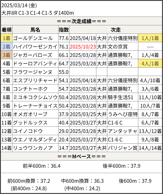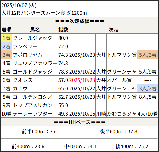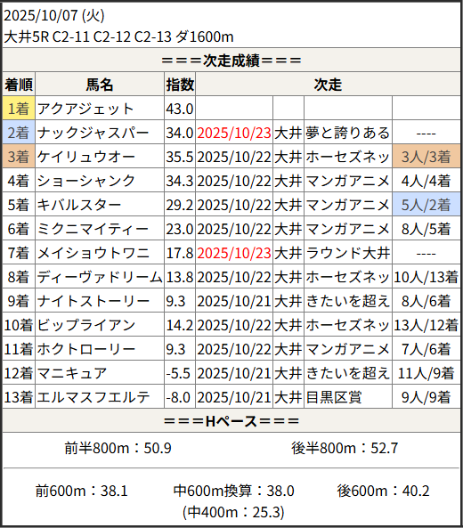 2025/10/23 大井7R 文の京賞:結果