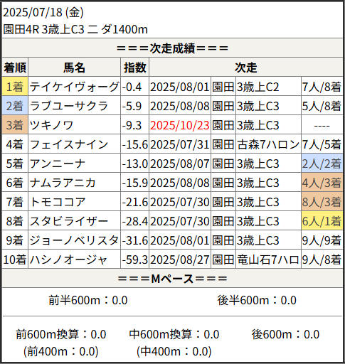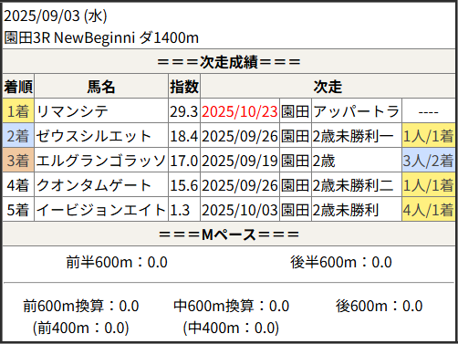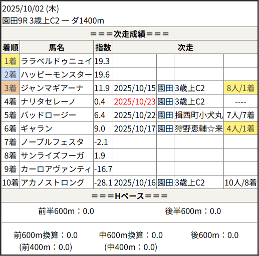 2025/10/23 園田1R 3歳上C3 二:結果