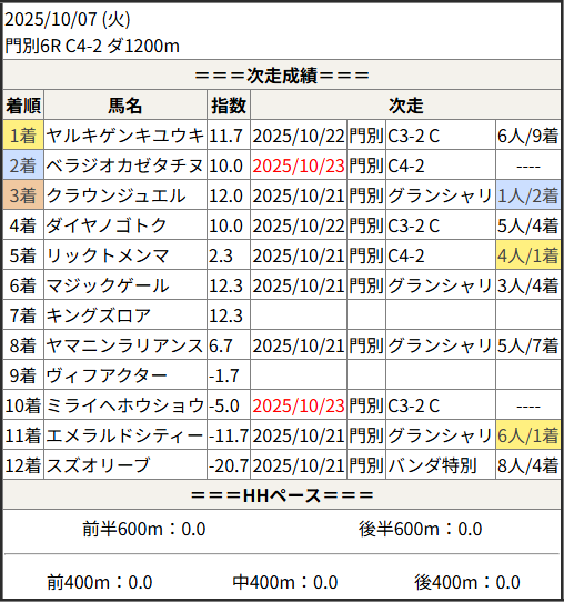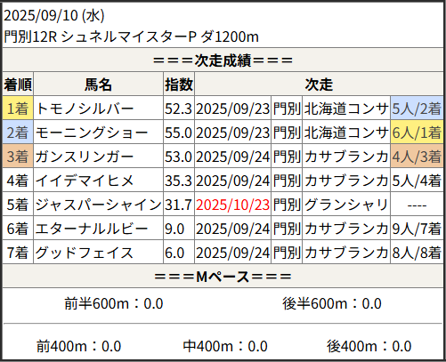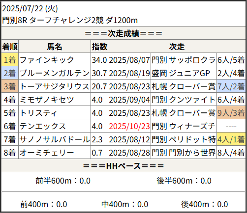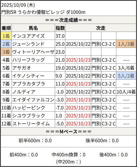2025/10/23 門別6R トルマリン特別:結果