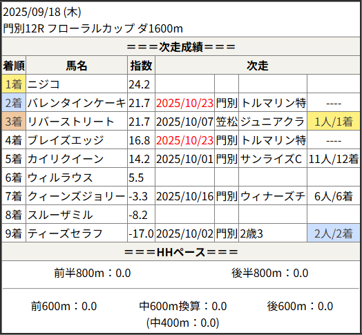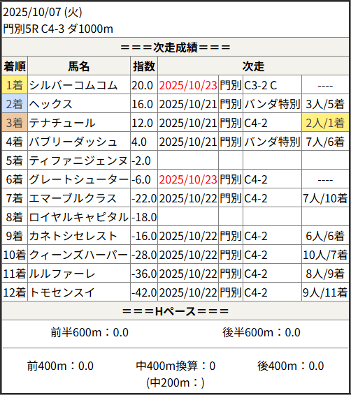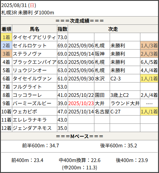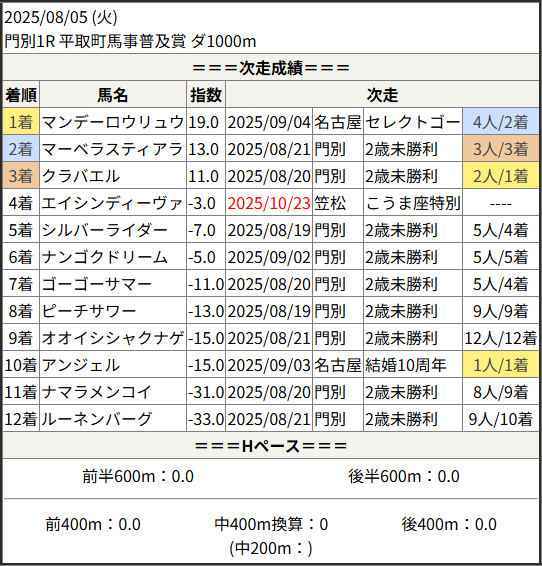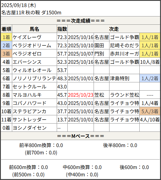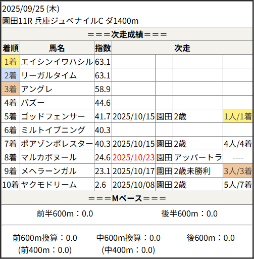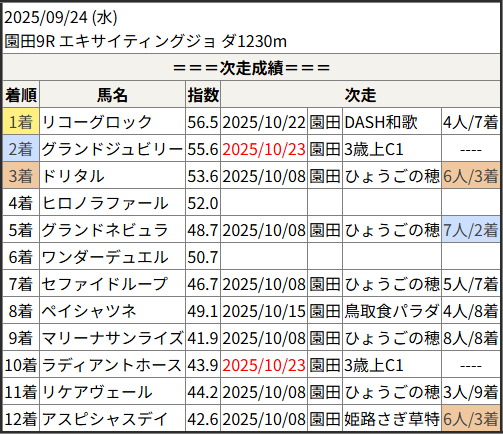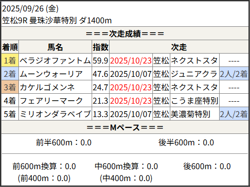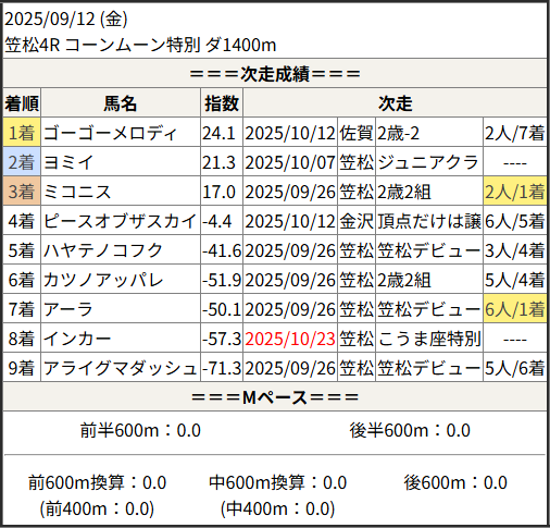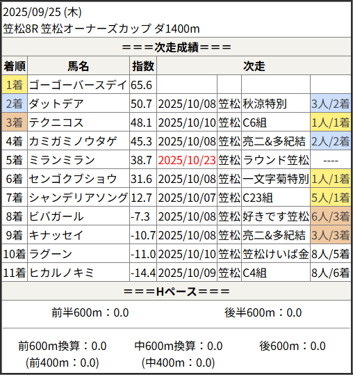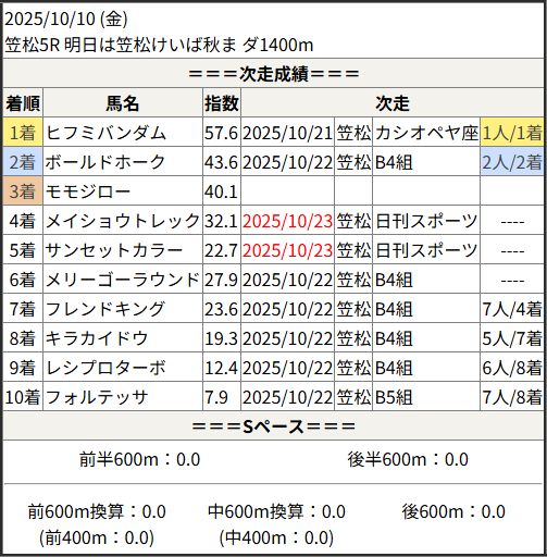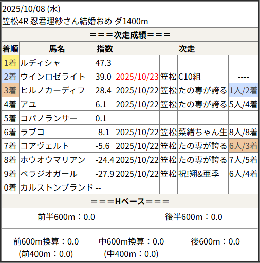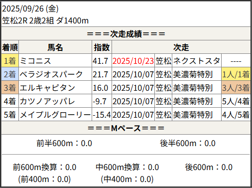 2025/10/23 笠松5R 日刊スポーツ極ウマく:結果