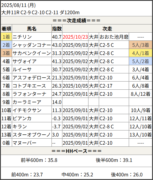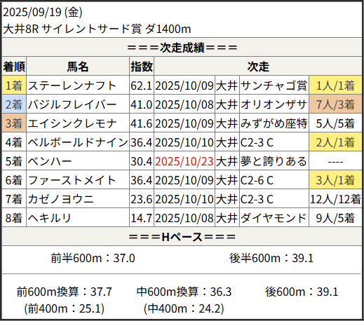 2025/10/23 大井8R ラウンド大井第1戦:結果