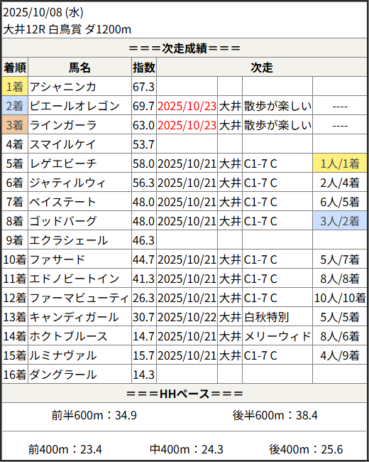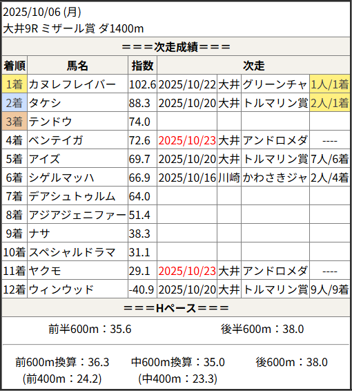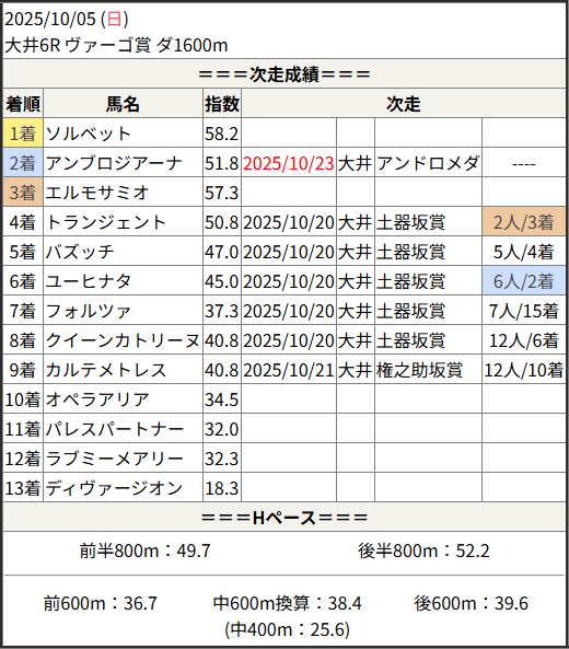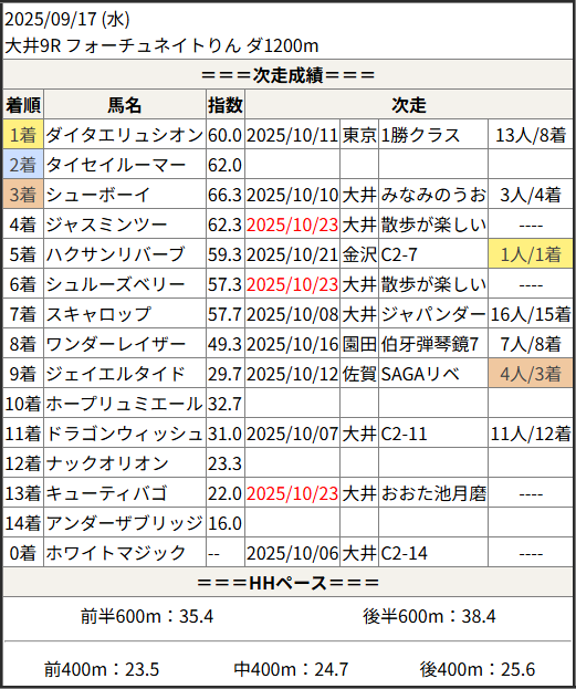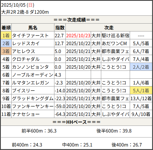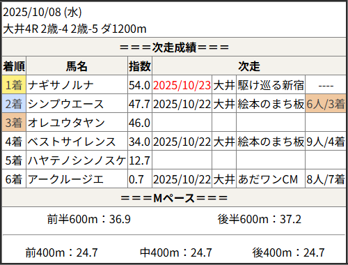 2025/10/23 大井2R 駆け巡る新宿!馬の足:結果