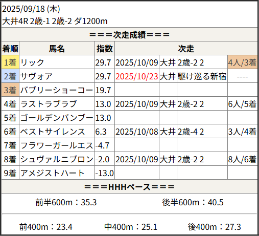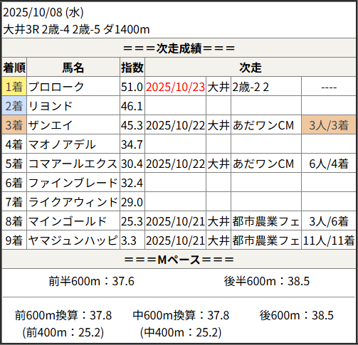 2025/10/23 大井1R 2歳-2 2歳-3:結果