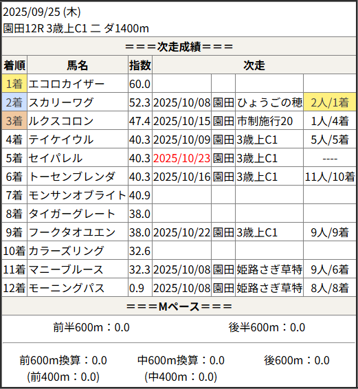 2025/10/23 園田12R 3歳上C1 一:結果