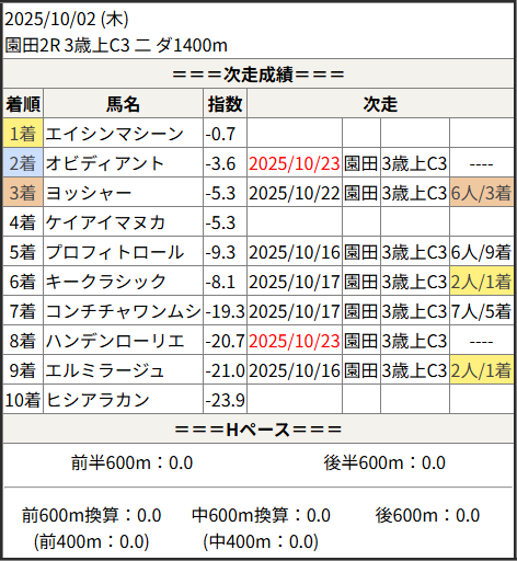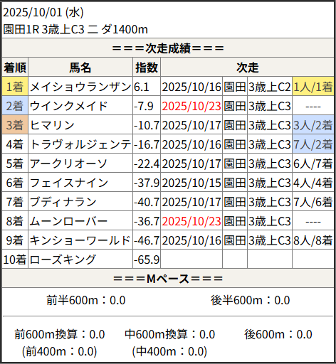 2025/10/23 笠松1R C10組:結果