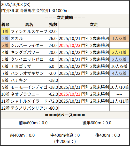 2025/10/23 門別8R ウィナーズチャレンジ:結果