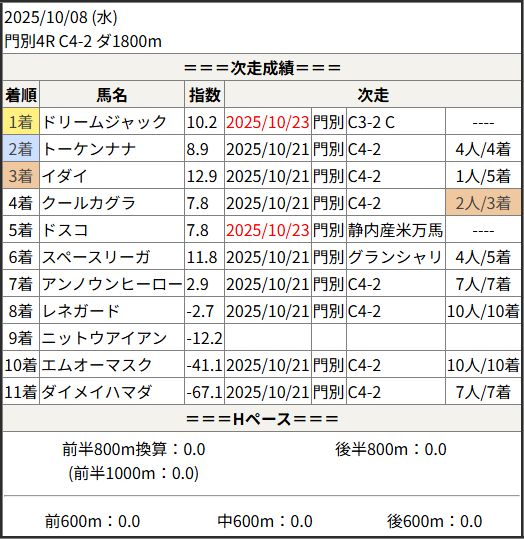 2025/10/23 門別3R C4-2:結果