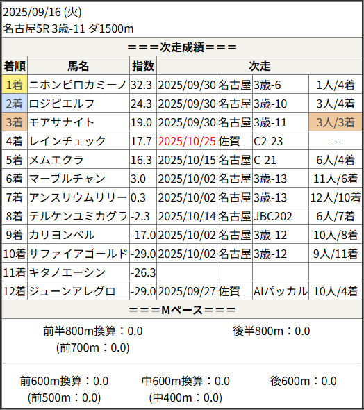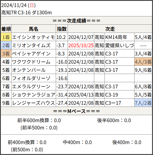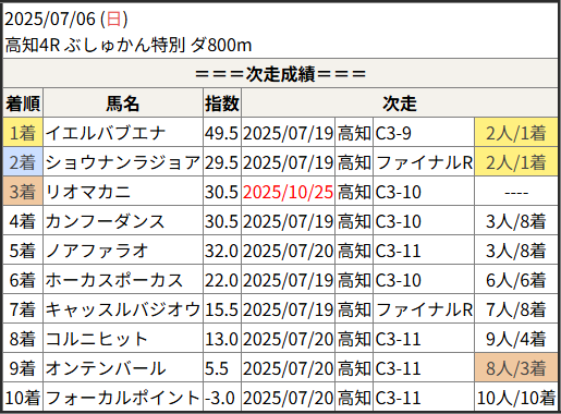 2025/10/25 高知3R 愛媛県いしづち特別:結果