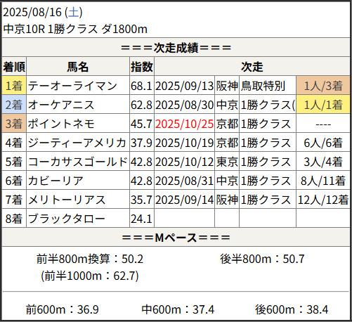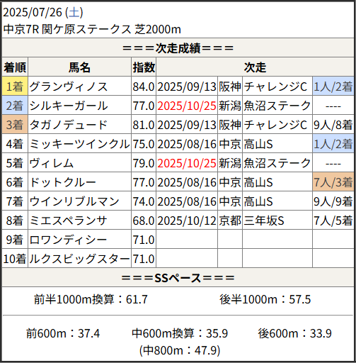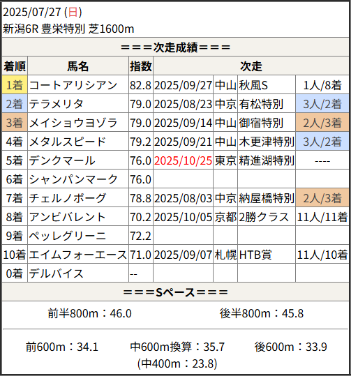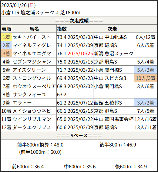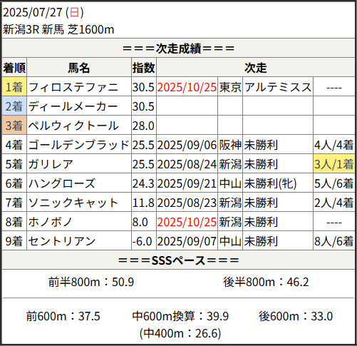 2025/10/25 新潟11R 魚沼ステークス:結果
