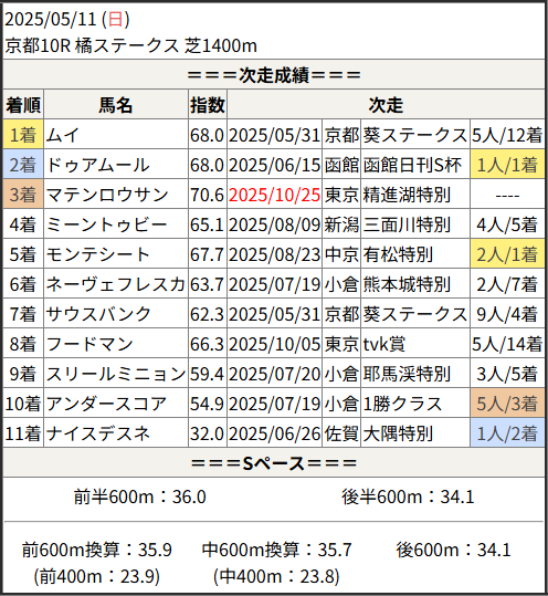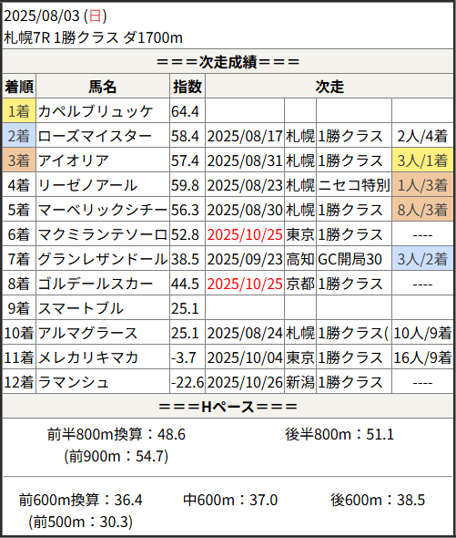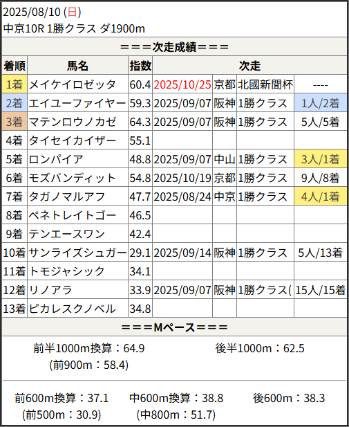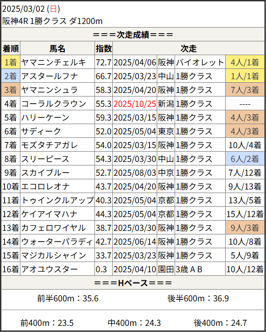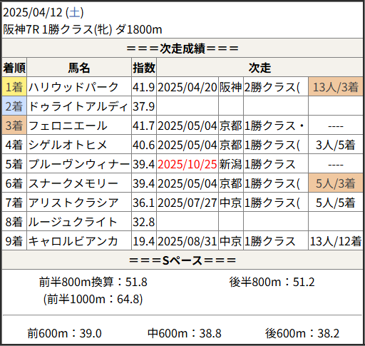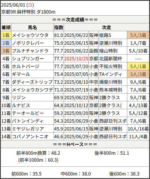 今回のメンバー相手に通用するかは、スピード指数表と合わせてご覧下さい。