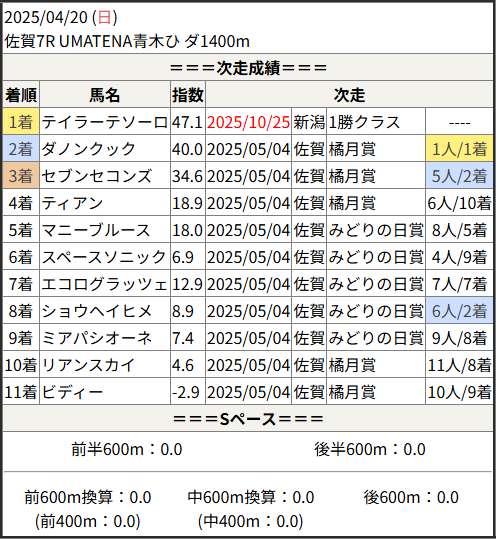 2025/10/25 佐賀2R ベテルギウス特別:結果