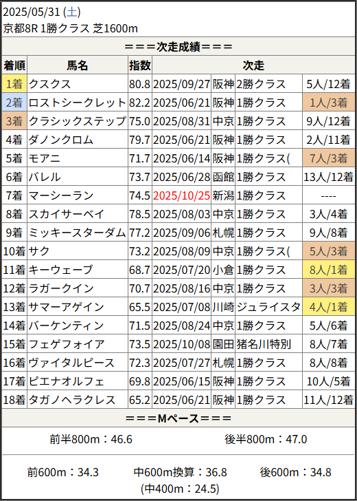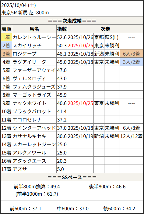 2025/10/25 新潟4R 1勝クラス(牝):結果