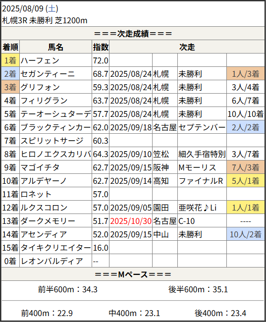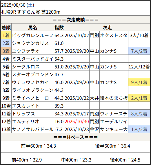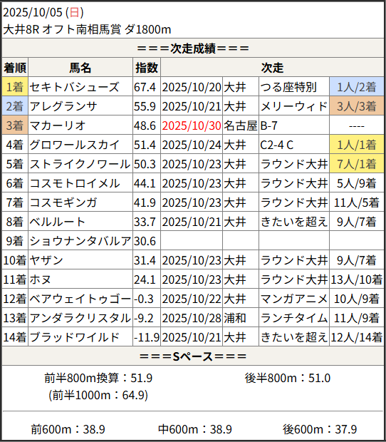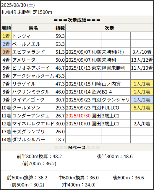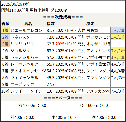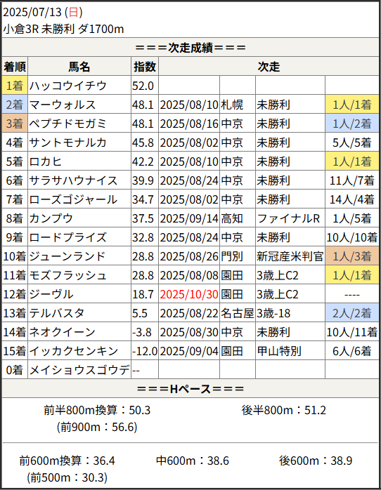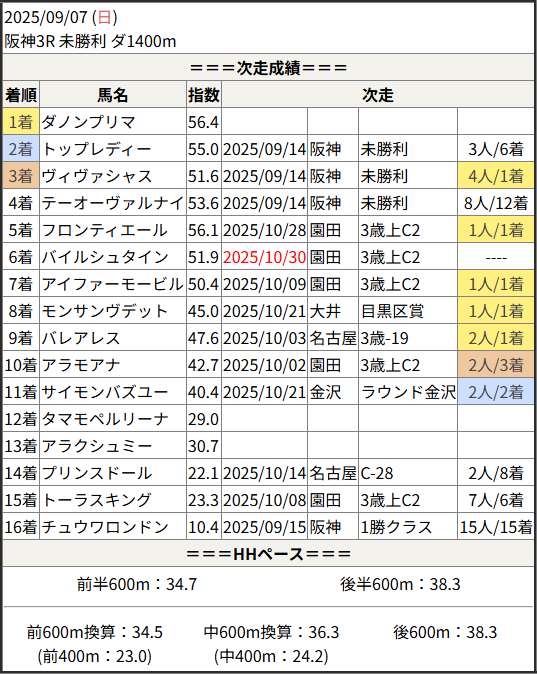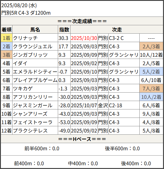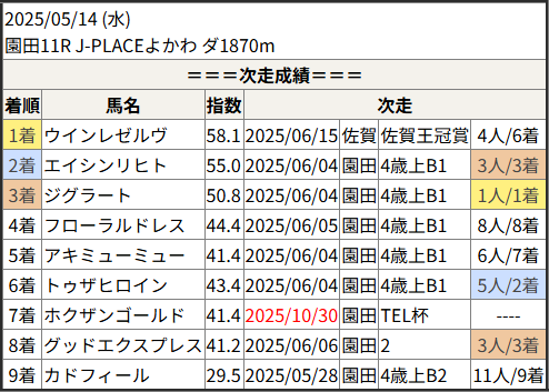 今回のメンバー相手に通用するかは、スピード指数表と合わせてご覧下さい。