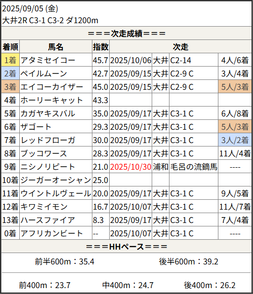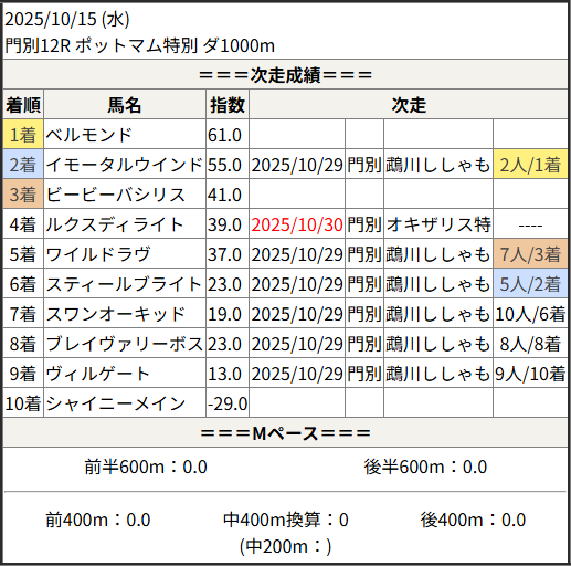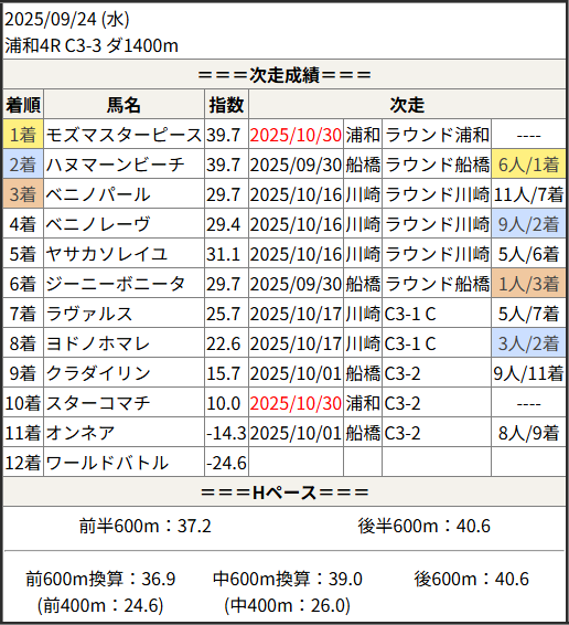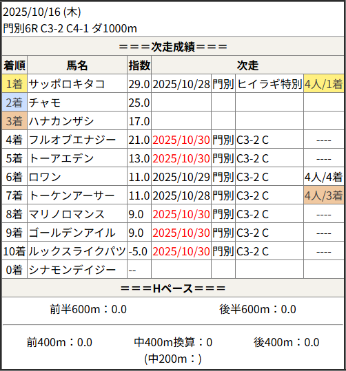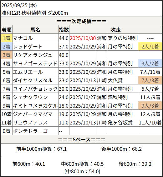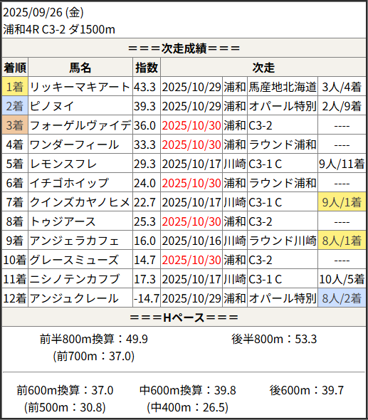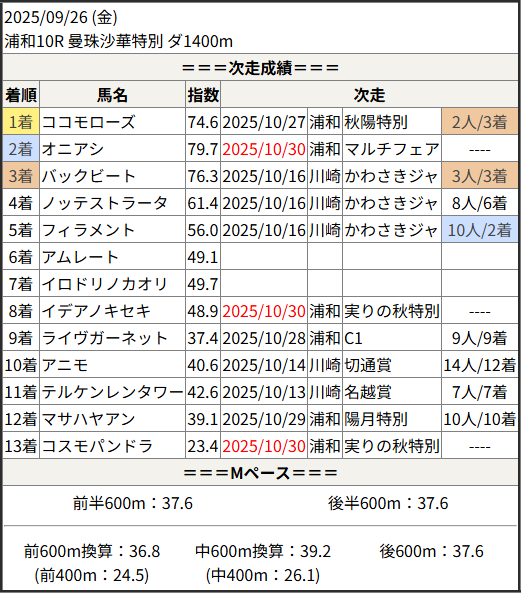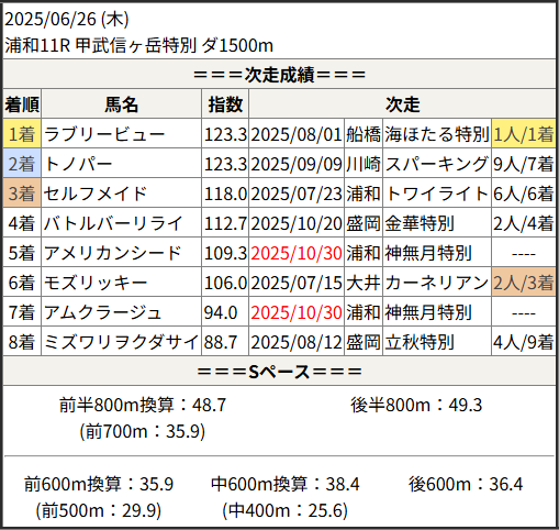 2025/10/30 浦和6R 寄居特産!風布小林み:結果
