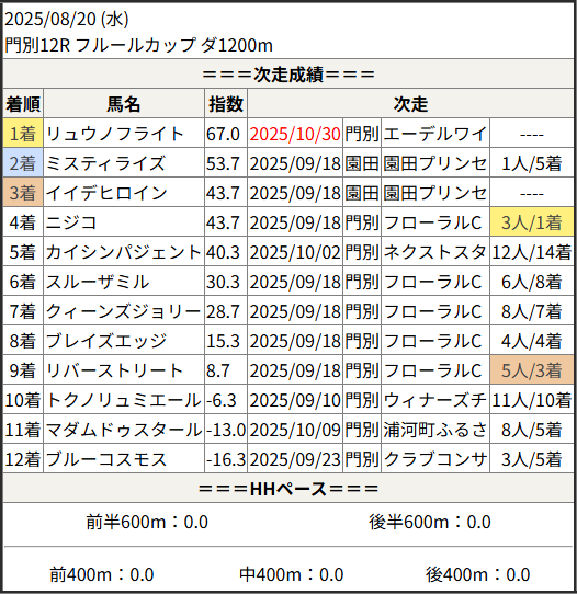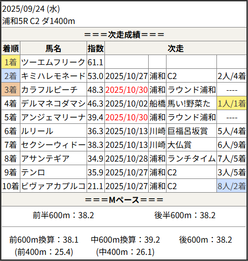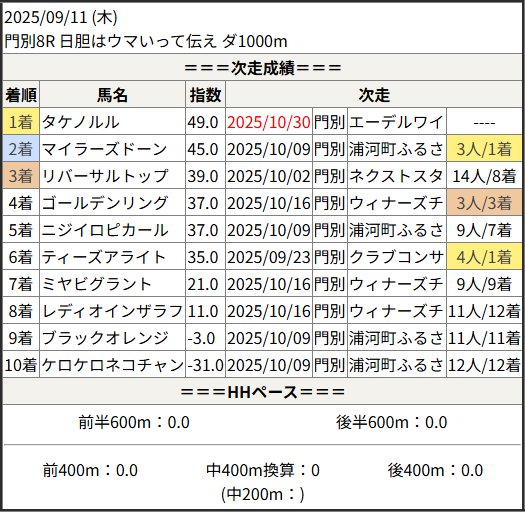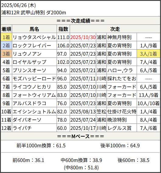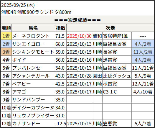 2025/10/30 浦和5R 毛呂の流鏑馬賞:結果