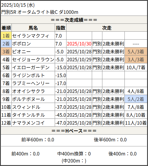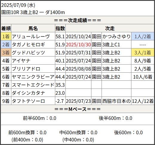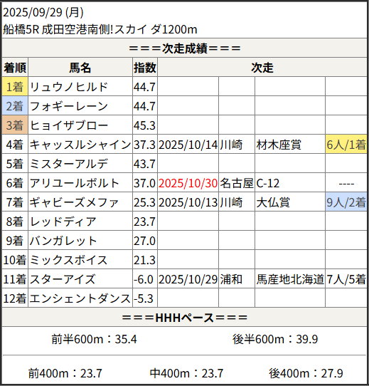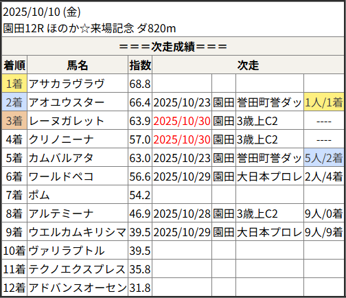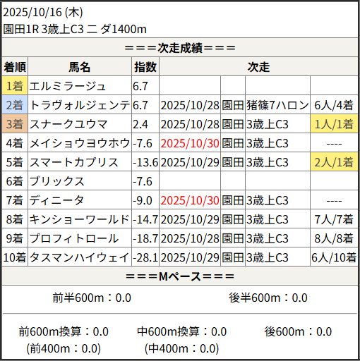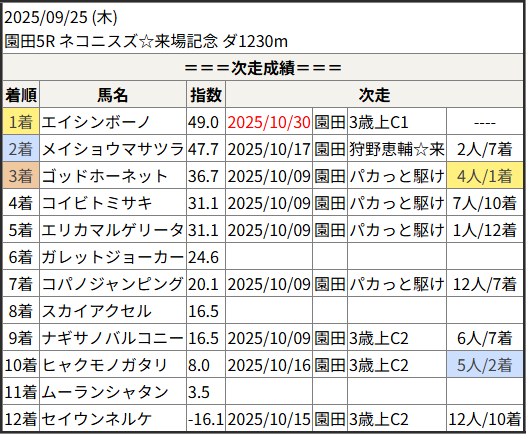 2025/10/30 園田5R 下来住町7ハロン:結果