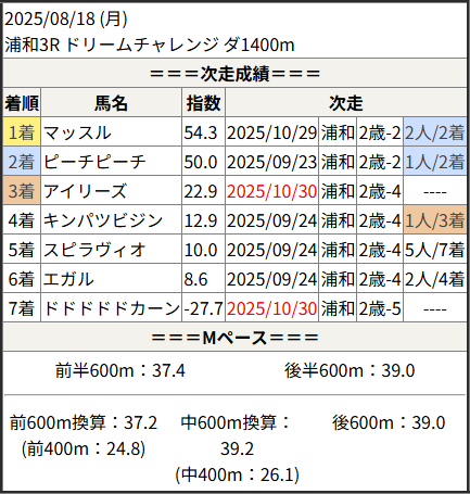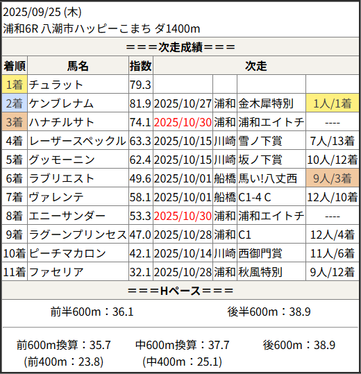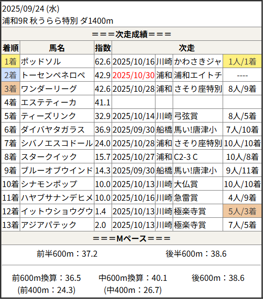 2025/10/30 浦和8R 浦和エイトチャレンジ:結果