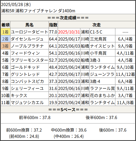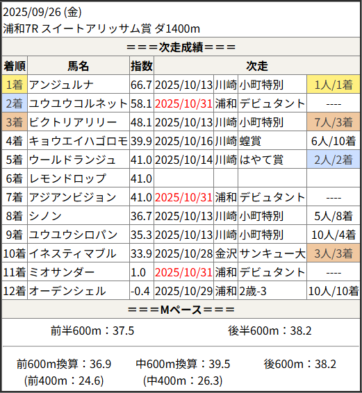 2025/10/31 浦和6R デビュタント賞:結果