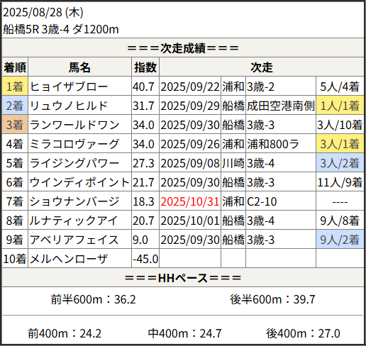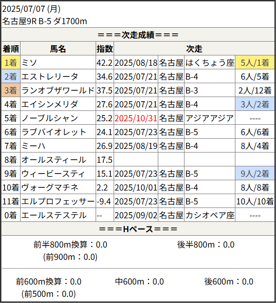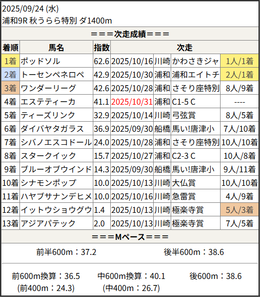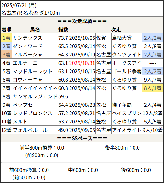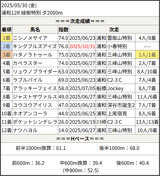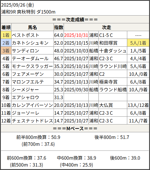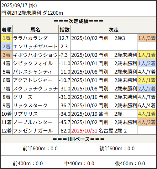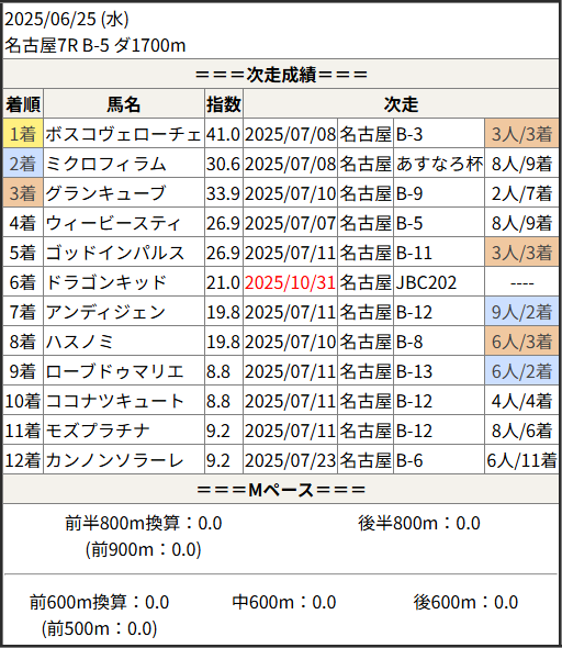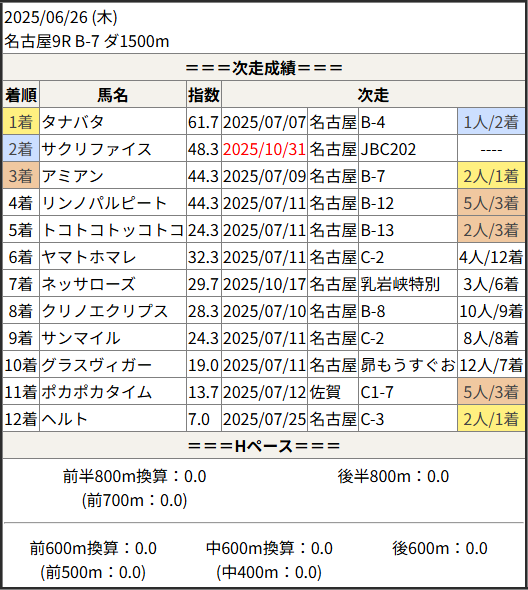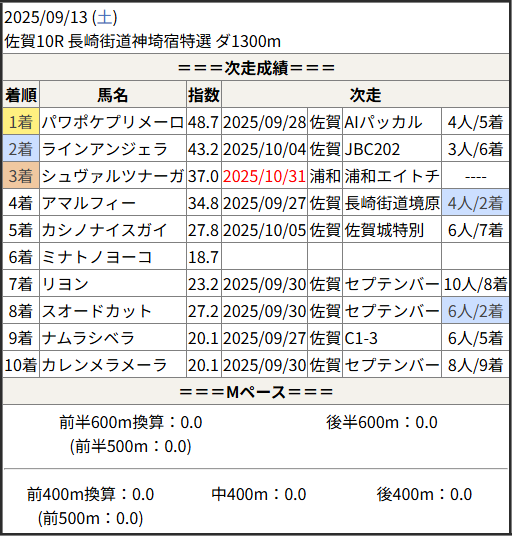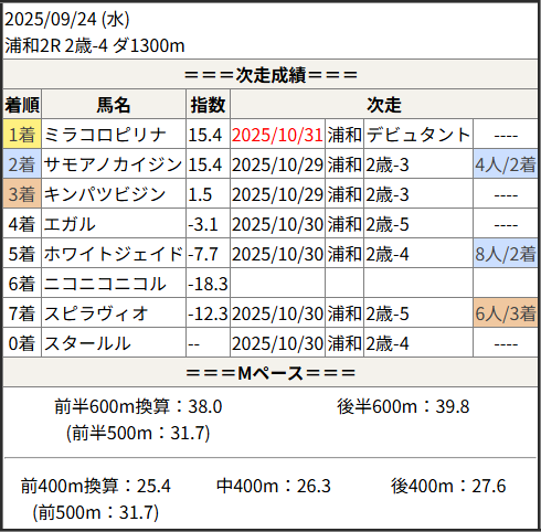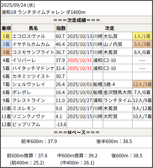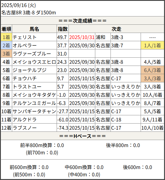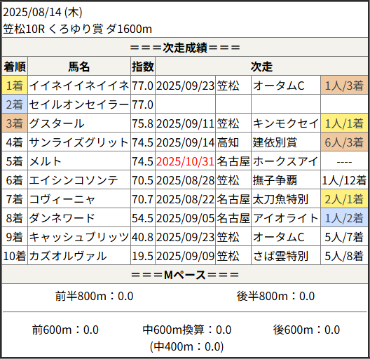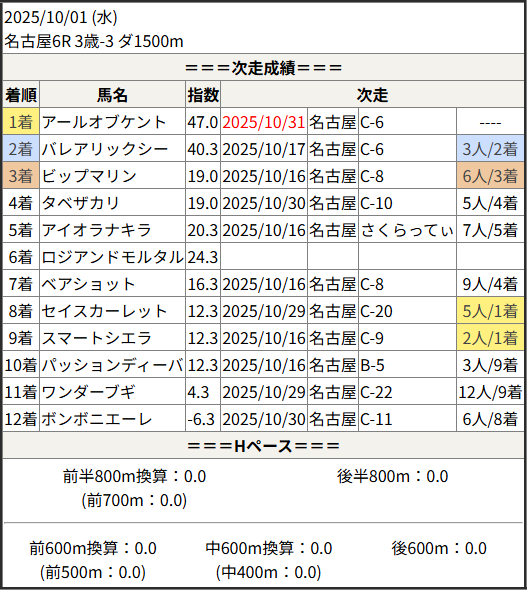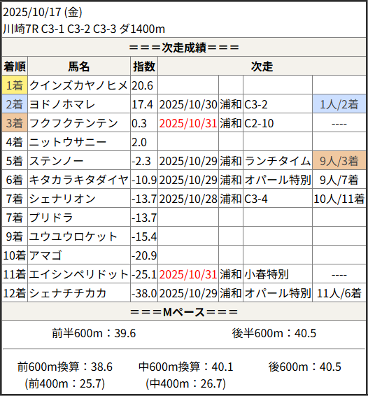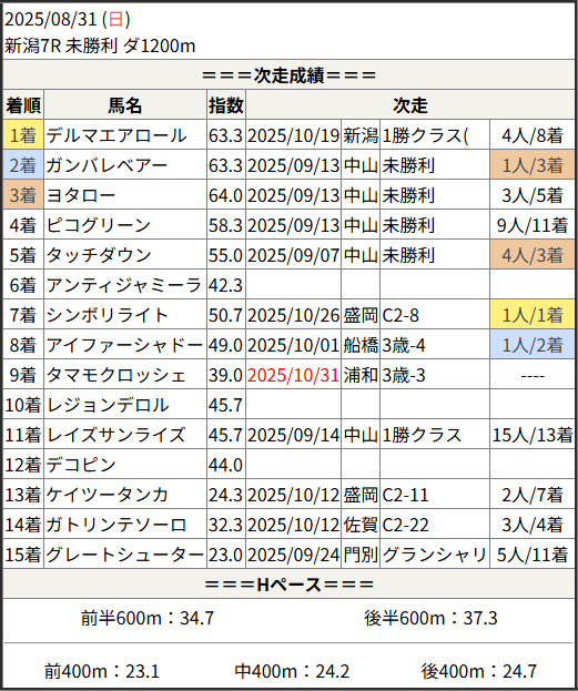 Home / 予想データ / 次走好走 / 2025/10/31 次走好走馬の目立つ組出身