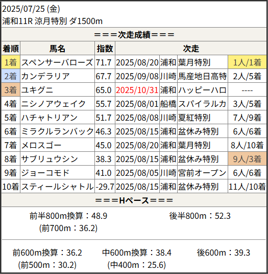 2025/10/31 浦和1R 3歳-3:結果