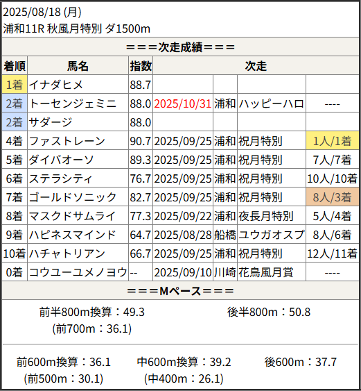 2025/10/31 浦和8R 浦和エイトチャレンジ:結果
